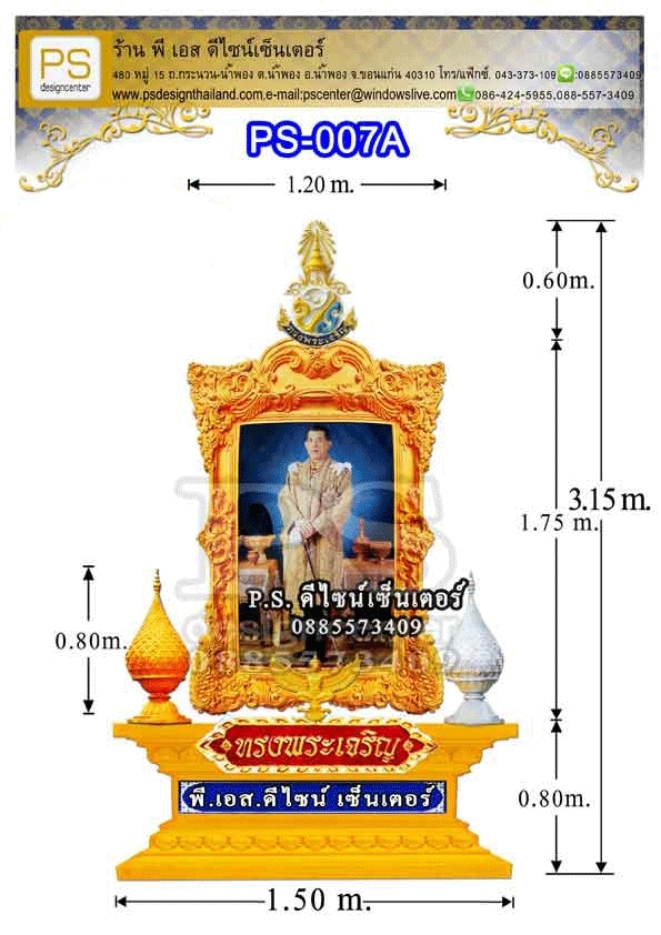 *ป้ายทรงพระเจริญไฟเบอร์กลาส ขนาด 0.25 x 1.20 เมตร.