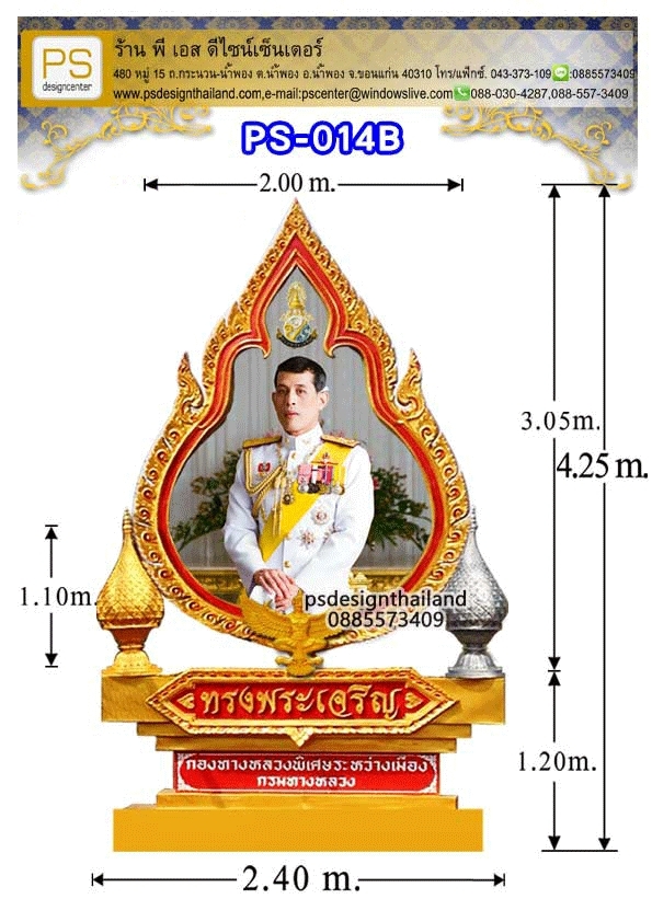 *ป้ายทรงพระเจริญไฟเบอร์กลาส ขนาด 0.45 x 1.80 เมตร.