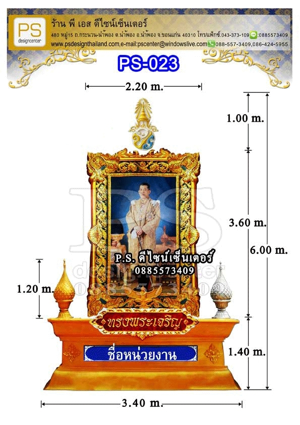 *ป้ายทรงพระเจริญไฟเบอร์กลาส ขนาด 0.45 x 1.80 เมตร.