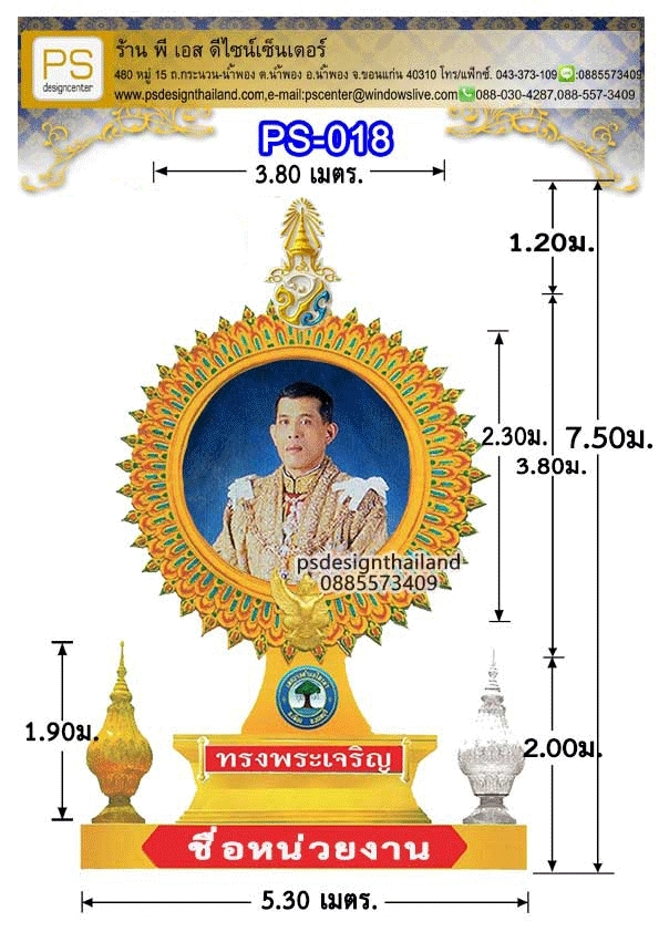 *ป้ายทรงพระเจริญไฟเบอร์กลาส ขนาด ยาว 2.00 เมตร.