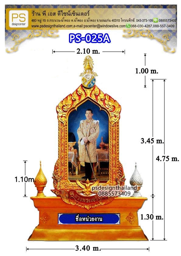 ซุ้มเฉลิมพระเกียรติ ขนาด 3.40 x 5.75 เมตร.